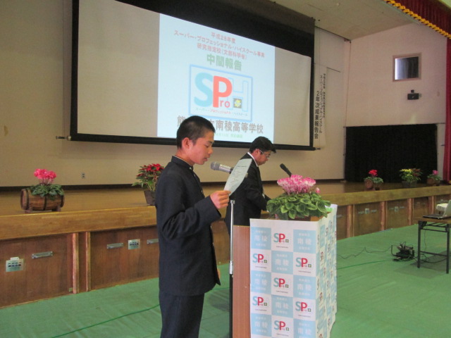 SPH活動報告 全ての記事 全ての記事 カテゴリ 今日の出来事 連絡事項 報告事項 ミーティング 本・雑誌 ニュース スポーツ パソコン・インターネット 総合学習 アーカイブ 2025年12月 (0) 2025年11月 (0) 2025年10月 (0) 2025年9月 (0) 2025年8月 (0) 2025年7月 (0) 2025年6月 (0) 2025年5月 (0) 2025年4月 (0) 2025年3月 (0) 2025年2月 (0) 2025年1月 (0) 2024年12月 (0) 2024年11月 (0) 2024年10月 (0) 2024年9月 (0) 2024年8月 (0) 2024年7月 (0) 2024年6月 (0) 2024年5月 (0) 2024年4月 (0) 2024年3月 (0) 2024年2月 (0) 2024年1月 (0) 2023年12月 (0) 2023年11月 (0) 2023年10月 (0) 2023年9月 (0) 2023年8月 (0) 2023年7月 (0) 2023年6月 (0) 2023年5月 (0) 2023年4月 (0) 2023年3月 (0) 2023年2月 (0) 2023年1月 (0) 2022年12月 (0) 2022年11月 (0) 2022年10月 (0) 2022年9月 (0) 2022年8月 (0) 2022年7月 (0) 2022年6月 (0) 2022年5月 (0) 2022年4月 (0) 2022年3月 (0) 2022年2月 (0) 2022年1月 (0) 2021年12月 (0) 2021年11月 (0) 2021年10月 (0) 2021年9月 (0) 2021年8月 (0) 2021年7月 (0) 2021年6月 (0) 2021年5月 (0) 2021年4月 (0) 2021年3月 (0) 2021年2月 (0) 2021年1月 (0) 2020年12月 (0) 2020年11月 (0) 2020年10月 (0) 2020年9月 (0) 2020年8月 (0) 2020年7月 (0) 2020年6月 (0) 2020年5月 (0) 2020年4月 (0) 2020年3月 (0) 2020年2月 (0) 2020年1月 (0) 2019年12月 (0) 2019年11月 (0) 2019年10月 (0) 2019年9月 (0) 2019年8月 (0) 2019年7月 (0) 2019年6月 (1) 2019年5月 (1) 2019年4月 (0) 2019年3月 (0) 2019年2月 (1) 2019年1月 (1) 2018年12月 (10) 2018年11月 (7) 2018年10月 (5) 2018年9月 (4) 2018年8月 (2) 2018年7月 (3) 2018年6月 (2) 2018年5月 (3) 2018年4月 (2) 2018年3月 (0) 2018年2月 (1) 2018年1月 (1) 2017年12月 (5) 2017年11月 (2) 2017年10月 (5) 2017年9月 (4) 2017年8月 (5) 2017年7月 (4) 2017年6月 (4) 2017年5月 (5) 2017年4月 (5) 2017年3月 (2) 2017年2月 (4) 2017年1月 (1) 2016年12月 (5) 2016年11月 (5) 2016年10月 (5) 2016年9月 (5) 2016年8月 (1) 2016年7月 (3) 2016年6月 (9) 2016年5月 (3) 2016年4月 (4) 5件 1件 5件 10件 20件 50件 100件 ・SPH2年次研究成果報告会 ポスターセッション (2017/12/21) 投稿日時 : 2017/12/25 学校サイト管理者 ・SPH2年次研究成果報告会 ポスターセッション (2017/12/21)12月21日(木)SPH2年次研究成果報告会 ポスターセッションの様子です。15本の取組を発表し、その後、研究報告・意見交換を行いました。最後に、高校教育課草野主幹から指導・講評を頂きました。生徒の進行でポスターセッションを進めます評価票を入れてもらっています。研究報告(佐藤研究主任)質疑応答意見交換指導・講評 (高校教育課 草野主幹) ・秋田県立大曲農業高校 学校訪問 【SPH】(2017/12/22) 投稿日時 : 2017/12/22 学校サイト管理者 ・秋田県立大曲農業高校 学校訪問 【SPH】(2017/12/22)12月22日(金)秋田県立大曲農業高等学校の佐々木孝之先生が、SPH関係で、来校されました。南稜高校SPH主任の佐藤先生と、顧問の柿本先生が説明しました。 ・高鍋農業・福岡農業・南稜高校SPH校 3校連携 学習会 (2017/12/11) 投稿日時 : 2017/12/12 学校サイト管理者 ・宮崎県立高鍋農業高校・福岡県立福岡農業高校・南稜高校 SPH校 3校連携 交流学習会 (2017/12/11)12月11日(月)九州内の農業関係SPH校3校すべてが集まり、交流学習会を行いました。福岡農業高校 都市園芸科2年37人、高鍋農業高校 各科から34人、南稜高校 芸科学科2年野菜専攻 12人の合計83人が参加。福岡農業高校 泊校長先生の挨拶の後、各学校代表生徒挨拶。各学校の紹介プレゼンの後、12班に分かれて、交流学習会を行いました。学習テーマについて、協議し、まとめていきました。【学習テーマ】GAPのメリット・デメリットを理解し、必要性と導入に向けた課題を検討する学習①:GAPの共通理解を図るため、班内でGAP概要をまとめる【以降、KJ法で進行】学習②:GAP導入によるメリット(効果等)を考える学習③:GAP導入によるデメリットを考える学習④:まとめとして、GAP導入の必要性・課題を考える発 表:GAPについての学習成果をまとめ、代表班(3班)による検討結果の報告を行う福岡農業高校 泊校長 挨拶12班に分かれて 協議福岡農業高校の生徒の皆さん ・くまもと県版GAP認証 第1号 (2017/12/5) 投稿日時 : 2017/12/06 学校サイト管理者 ・くまもと県版GAP認証 第1号 (2017/12/5)12月5日(火)蒲島熊本知事から、くまもと県版GAP認証の認定証書をいただきました。品目はトマトとミニトマトが対象です。「きくちのまんまアスパラガスGAP組合(2戸)」と南稜高校が第1号として認証されました。 ・スーパーハイスクール指定校合同研究発表会 (2017/11/12) 投稿日時 : 2017/11/15 学校サイト管理者 ・スーパーハイスクール指定校合同研究発表会 (2017/11/12)11月12日(日)崇城大学で平成29年度熊本県スーパーハイスクール指定校合同研究発表会が行われました。熊本県教育委員会主催。SSH:第二高校、熊本北高校、宇土中学・宇土高校、天草高校SGH:済々黌高校、水俣高校SPH:南稜高校の7高校と1中学校が参加。ポスターセッション、研究発表を行いました。本校は、食品科学科「栗と麹の素敵な出会い」を発表。3年の荒木さん、恒松さん、永田さんの3名が発表、ポスターセッションを行いました。八代工業高校、宮崎県立宮崎北高校も参加。ポスターセッション高校教育課 牛田課長 