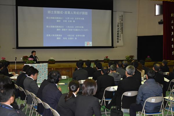 ・SPH2年次研究成果報告会 ポスターセッション (2017/12/21) 投稿日時 : 2017/12/25 学校サイト管理者 ・SPH2年次研究成果報告会 ポスターセッション (2017/12/21)12月21日(木)SPH2年次研究成果報告会 ポスターセッションの様子です。15本の取組を発表し、その後、研究報告・意見交換を行いました。最後に、高校教育課草野主幹から指導・講評を頂きました。生徒の進行でポスターセッションを進めます評価票を入れてもらっています。研究報告(佐藤研究主任)質疑応答意見交換指導・講評 (高校教育課 草野主幹)