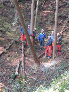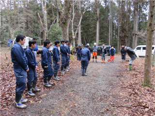 球磨地域振興局農林部林務課職員と林研クラブ員の指導のもと、伐採木を各班(4人1組の2班編成)で30本程度選び、