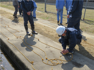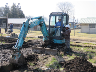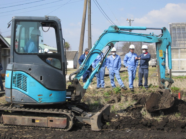 の掘削作業と基準点測量から検査確認までを体験させていただきました。また、排水管内の詰まりを掃除するためのロー