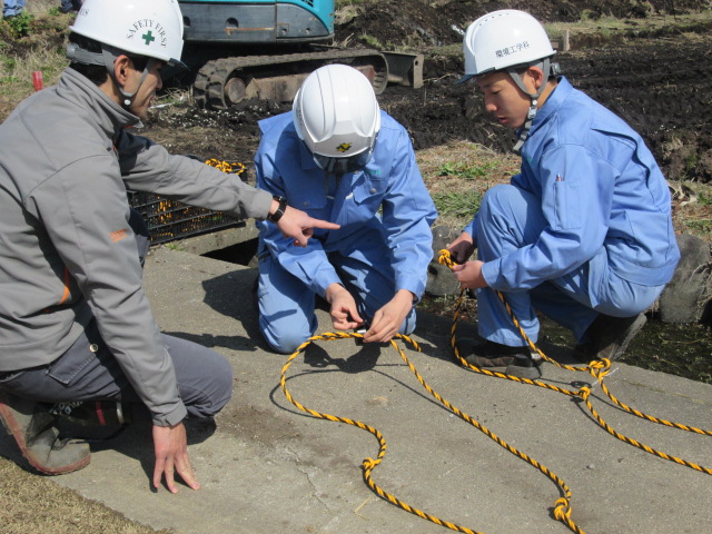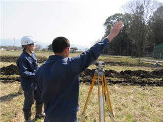 県南広域本部 球磨地域振興局 農林部 農地整備課の方と施工業者の横山造園に依頼し、環境工学科 1年11人、