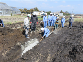 平成28年度熊本県農業土木教育機関・行政研究協議会の事業における、暗きょ排水設置の実習(研修)を行いました。
