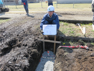 設置作業を行います。設置後は、暗きょ排水の機能が、これまでの生産にどれだけ影響を及ぼすのかを検証し、データ