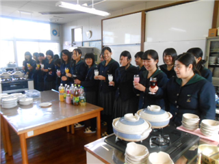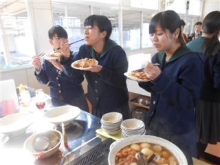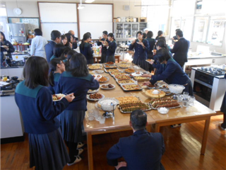 2月14日(火)の昼休みに、2年生活経営科の成果発表会(ランチ会)を行いました。これまで2年間の調理実習で学んだことを活かし、