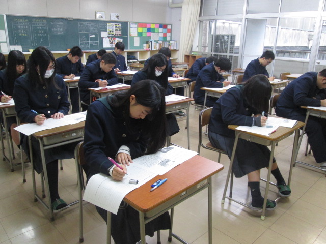 学年集会では社会人としての基本知識や心得を進路指導部から説明を受け、皆真剣な面持ちで聞いていました。