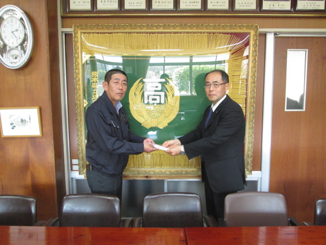 1月31日(火)13時、球磨林業奨学会 奨学金交付式を行いました。