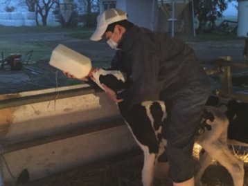 す。少し強引に飲ませているようですが子ウシは喜んで飲み干していました!