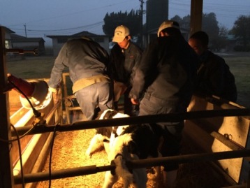 研修寮の朝は早く、5時40分起床です。朝起きるとすぐに準備をして、6時には神殿原農場へ出発です。