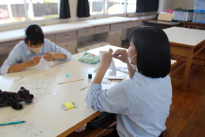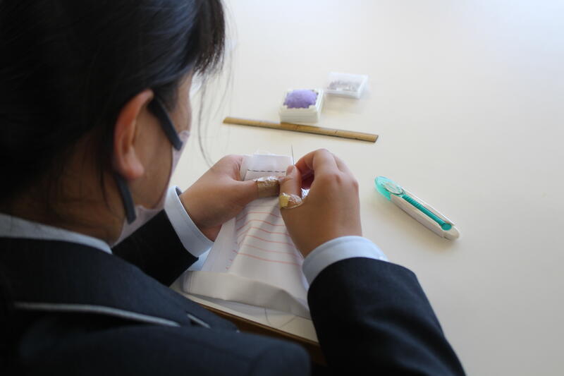 今日は、しつけ糸を使った仮縫いに挑戦する生徒が多くいました