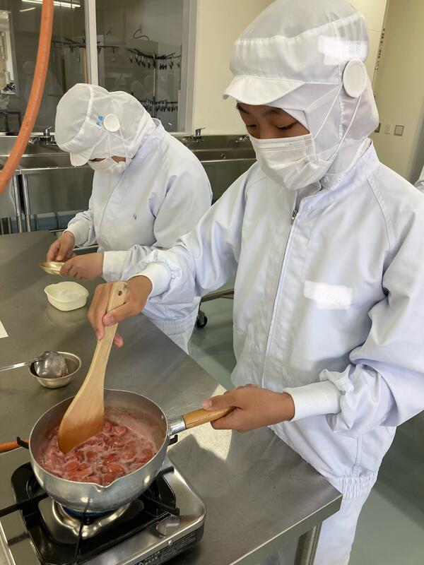 先週の火曜日に続いて本日は、後半グループがいちごジャム製造実習を行いました。