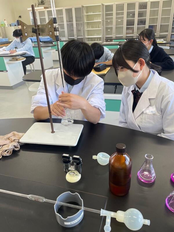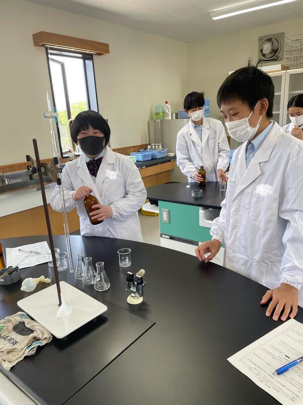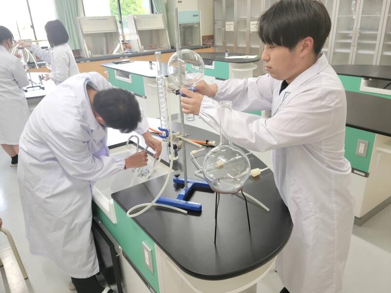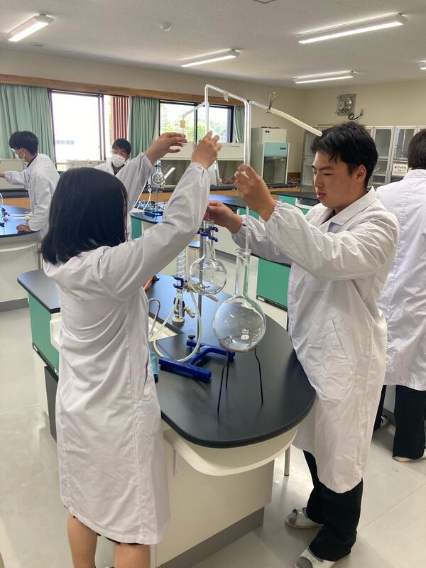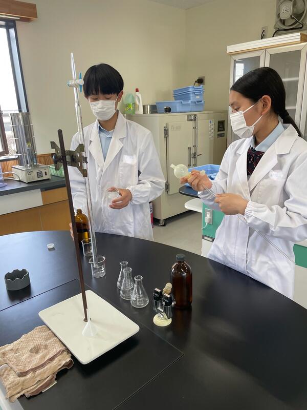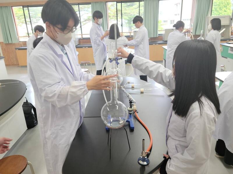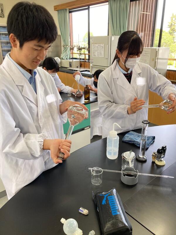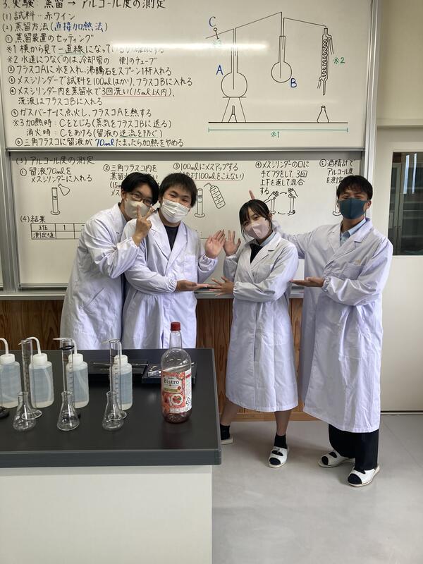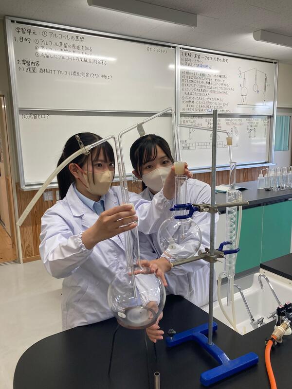 本日は化学の授業で銀鏡反応とフェーリング反応実験を行い、醸造はアルコールの蒸留実験に入りました。