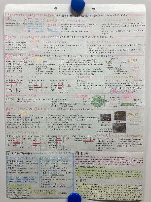 【1学期レポート】運営部の生徒が2学期間の取り組みをまとめたレポートです。思いがあふれA3用紙両面びっしり記入してあります。