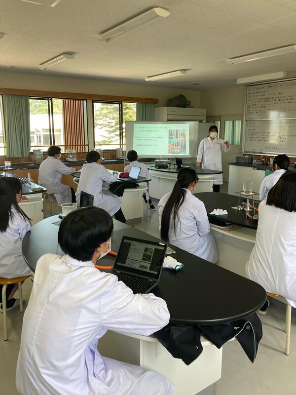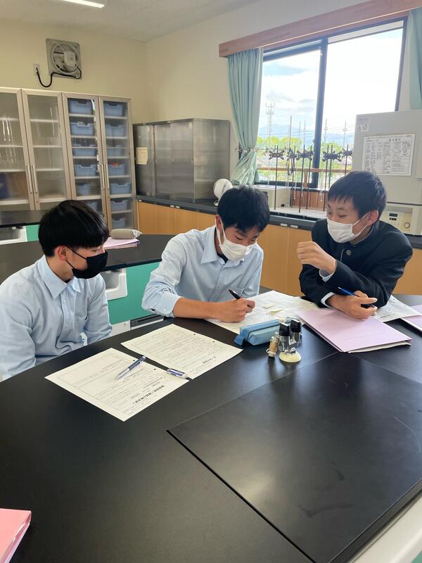 本日1、2時間目は3年生の課題研究があり、続けて3、4時間目は、2年生の課題研究が行われます。