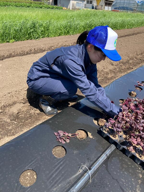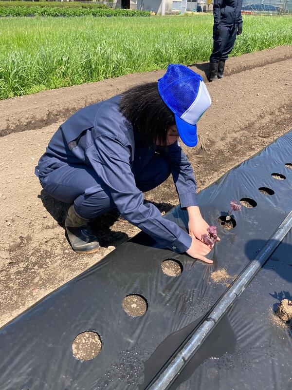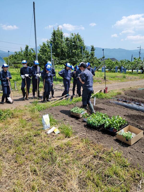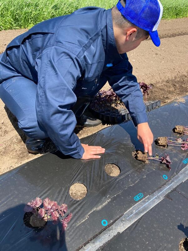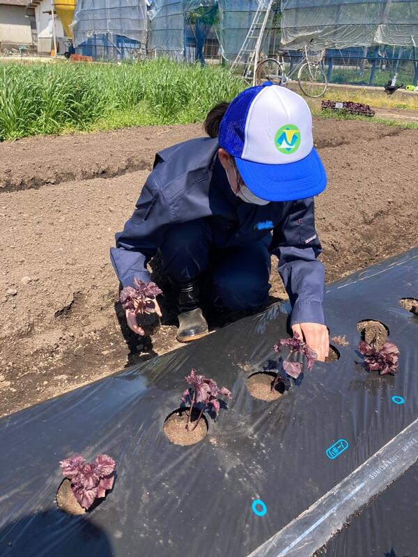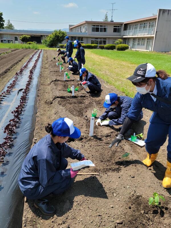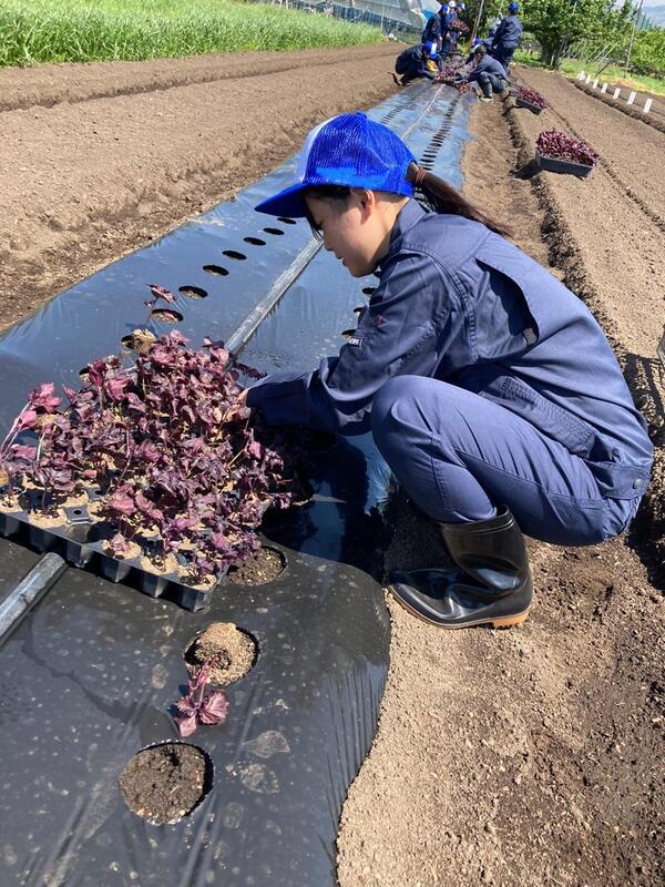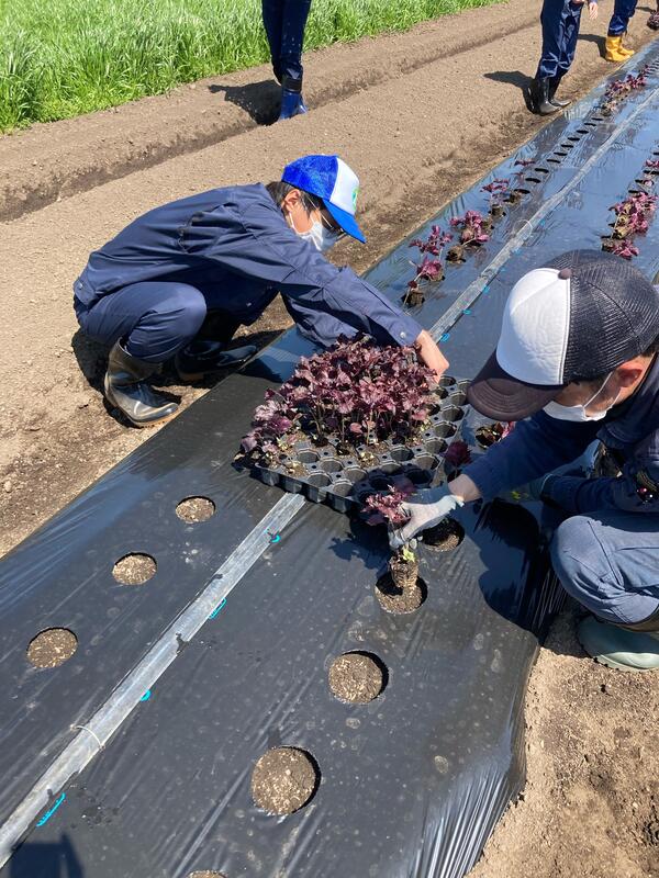 本日5限目に本校の実習製品である「シソジュース」と「KUMAの初恋」の原料となる、赤シソの定植を行いました。1年生がシソの定植、管理、収穫を行い2年生が「シソジュース」と「KUMAの初恋」を製造し瓶詰めします。