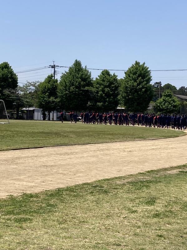 遠くから見てもきちんと揃って美しい!初めての練習でこれだけ揃えられる1年生すごいですね