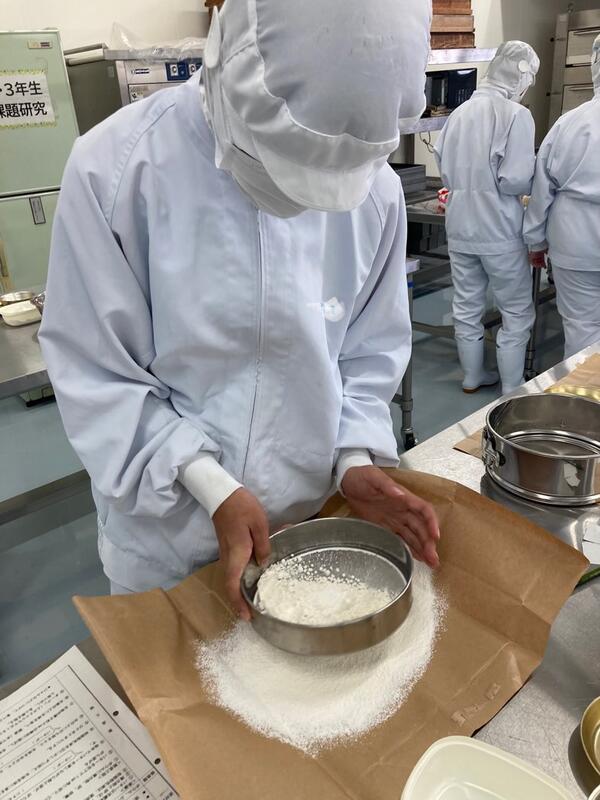 昨日3、4限目に他学科の生徒が食品製造を学ぶ総選Aの授業が行われ、初めて実習服に着替えてマドレーヌ製造実習を行いました受講者は、生活経営科と普通科福祉コースの生徒ですが日頃より調理実習や福祉実習に取り組んでいるため食品科学科の生徒と変わらない手際の良さ、チームワークの良さでマドレーヌを製造しました