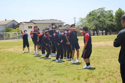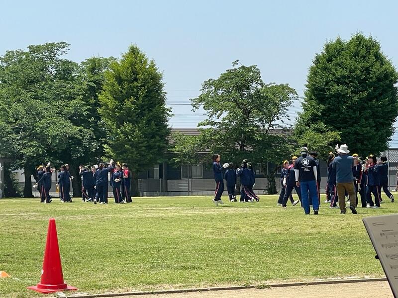 行進も得点に入るので、足の高さや手の向き・隣と揃えるなど細かく指導がありました。