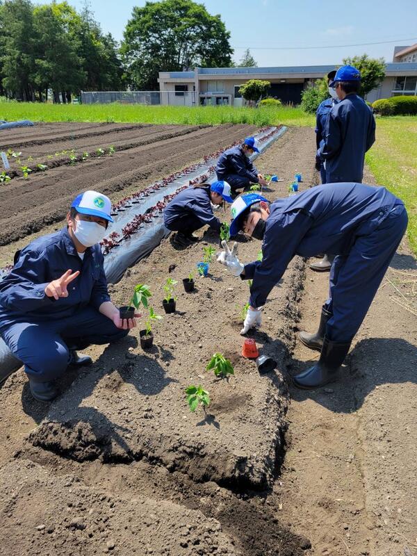 天候も良く暑さもありましたが、全員一生懸命取り組みました。初めての外実習服に着替え、土に触れ、楽しそうに実習を行う生徒の様子を是非ご覧下さい。