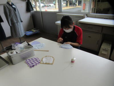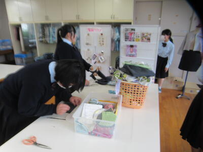 新入部員を6名迎えて活動しています。今日は、早くも南稜祭で販売予定の小さなかわいい巾着袋をすべて手縫いで制作しようと頑張ってます。