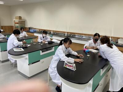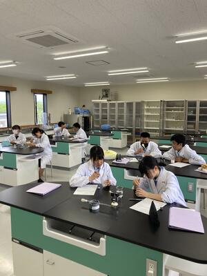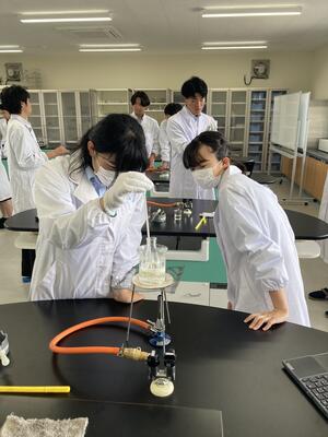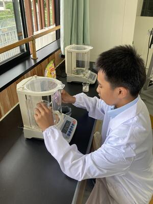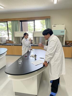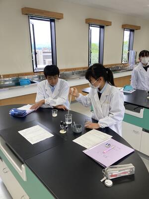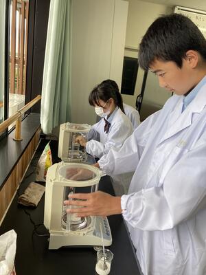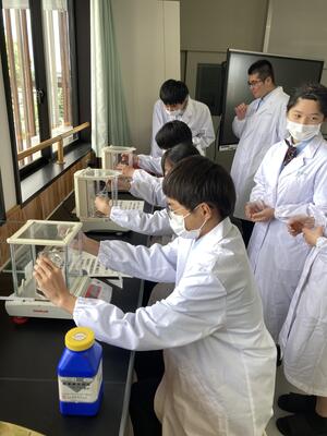 本日5、6限目に電子天秤や駒込ピペットを用いた基礎的な実験を行いました最後の片付けまで協力して取り組むことができました