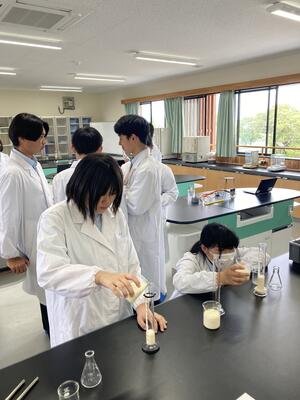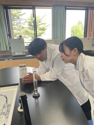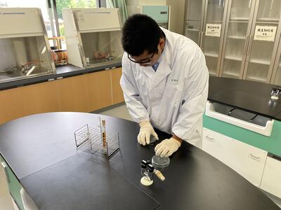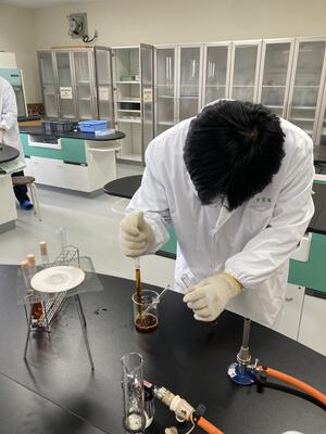 食品化学ではメイラード反応実験を行い醸造では、日本酒度計を用いた実験を行いました
