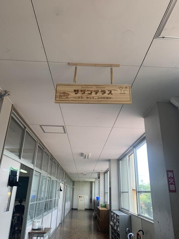 本校の南棟は、2学年4クラスの全員が学校生活を送る場です。せっかくなので2年生の生徒、職員から愛称を募集しました。とてもいい感じの作品が2点あり、さっそく取り付けました。