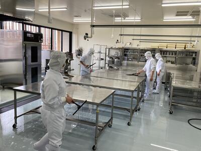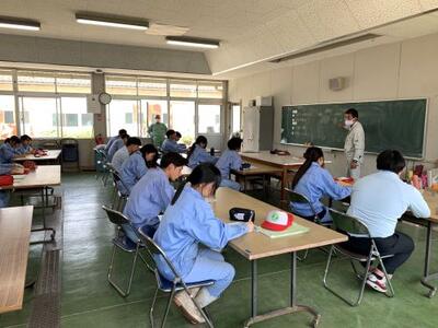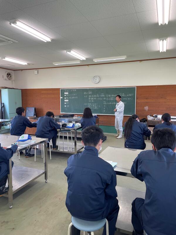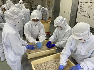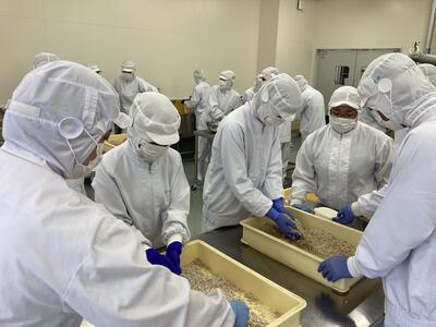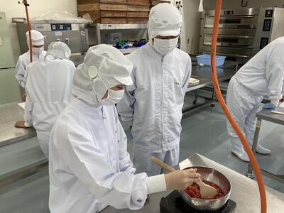 最初に製造工程を学習し、一通りの手順を確認した後に班員と分担して実習に取り組みます