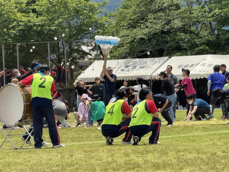 教職員と育友会の玉入れ対決!育友会チームの圧勝でした✨南稜体育大会では大人たちも本気です!!