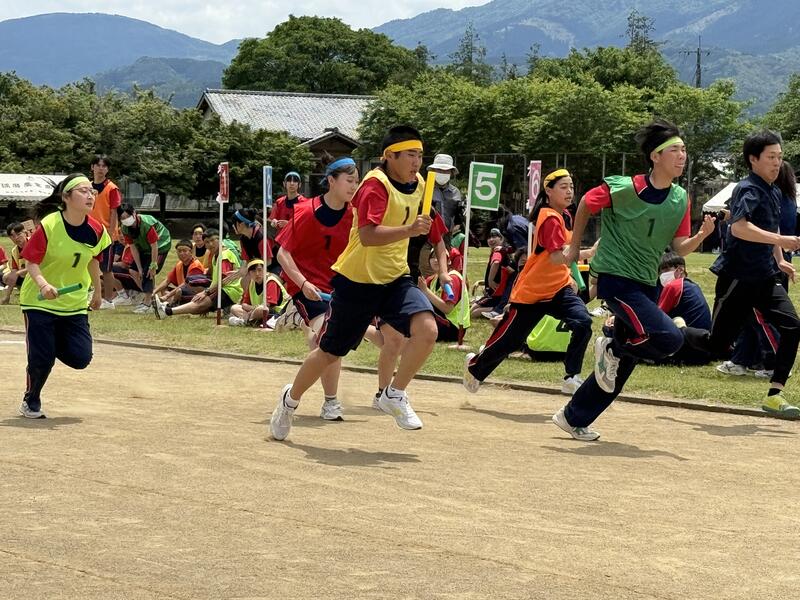 学年対抗リレーが最後の得点種目です!全学年、全力を尽くして頑張りました!教職員もこっそり参加しています。