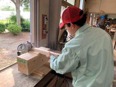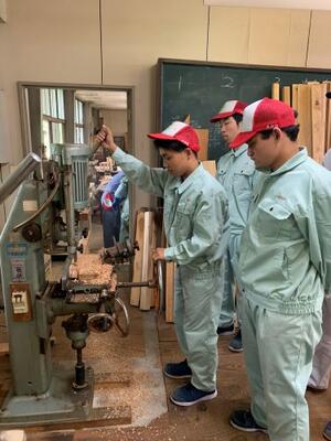 環境コースの2年生は、木材加工の基礎を行っています。釘を使わずに木材を組み上げるための「ホゾ」と「ホゾ穴」を今回は、機械で行います。丸鋸盤や角のみ盤を使うことで、速く正確に加工することができました。