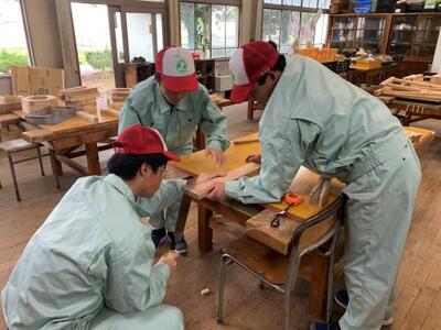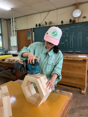 生活経営科の生徒は、家庭科科目の被服や調理などを主に行いますが、科目「林産物利用」を受講している生徒は、木材加工に熱中しています。中学生のみなさんは、DIY(Do it yourself:自分でものを作ること)というのを聞いたことがありますか?何においても技術を身に付けるのは素晴らしいことですね。
