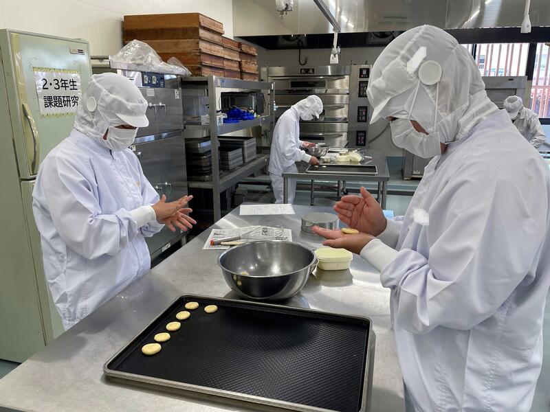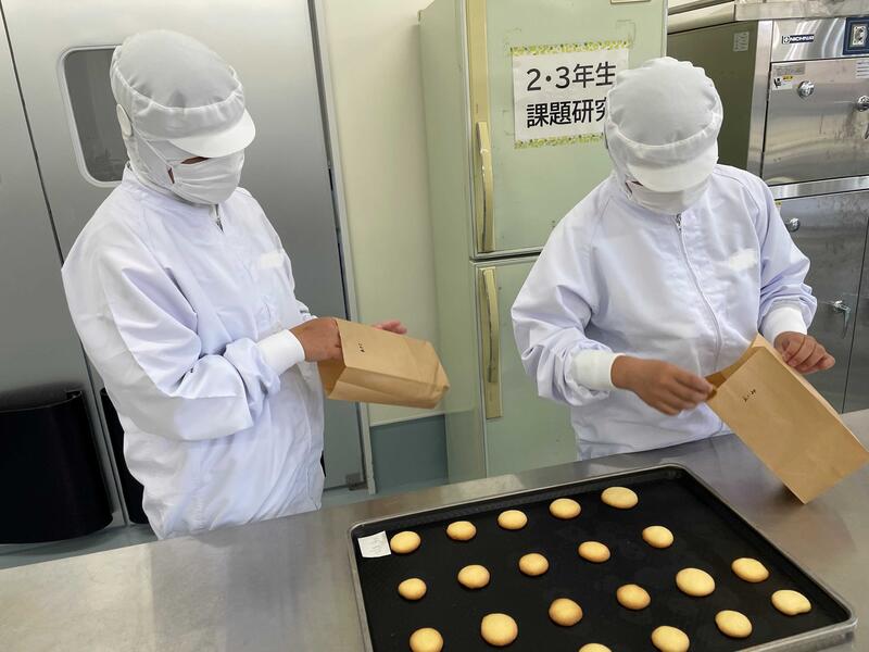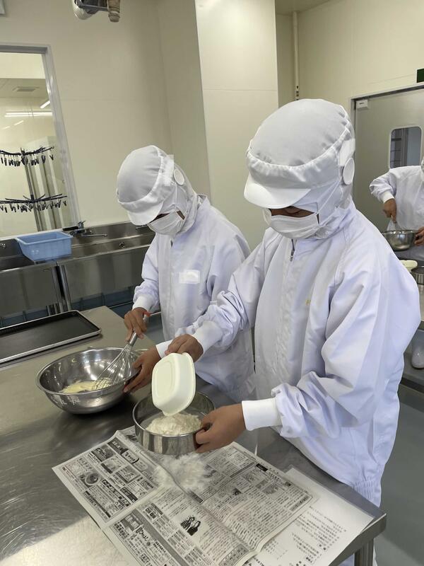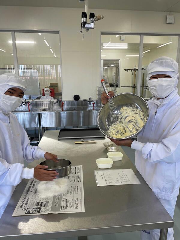 総合農業科2年生が食品科学科で製造実習に取組んでいます本日はマドレーヌの製造を行いました