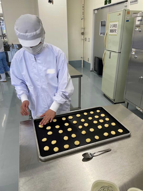 総合農業科2年生が食品科学科で製造実習に取組んでいます本日は薄力粉を使った型抜きクッキーの製造を行いました