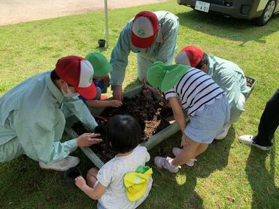 種まきには小学生、高校生、敬老会、利用者の方等世代を超えた参加がありました。