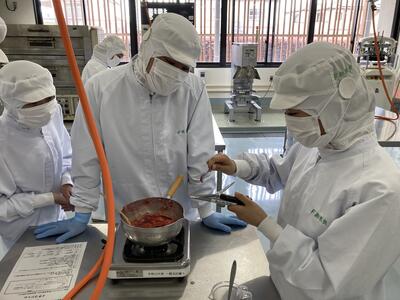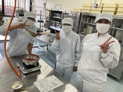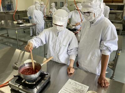 本日5、6限目にいちごジャムの持ち帰り実習を行いました濃縮具合や糖度を計りながら実習に取り組みました