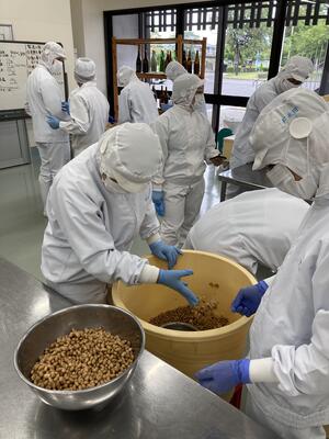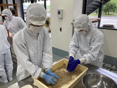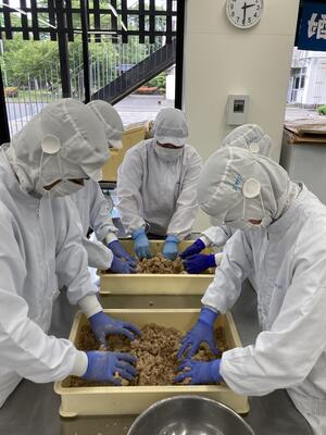 本日5、6限目に 南稜祭販売用の麦みその仕込みを行いました近年は時間割の都合上、時間外総合実習の授業で行ってきましたが、6年ぶり3年生全員で取り組むことができました