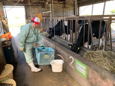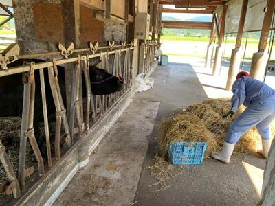 2年生の動物コースと3年生の畜産専攻は、神殿原農場で、肉用牛を育てています。中学生の皆さんは、牛の餌にも種類があるのを知っていますか?栄養価や価格等で分かれており、牛の状態を見ながら与えているのですよ。それにしても牛たちはおいしそうに食べています。