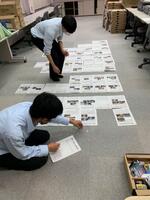 これは環境コースの授業風景です。たくさんのプリントは『プロジェクト活動記録簿』の日誌を振り返っているのです。「いつ、どこで、どのようなことをし、どのような発見があったか?」について、このようにして整理し、振り返ることで学びが深まるのですね!