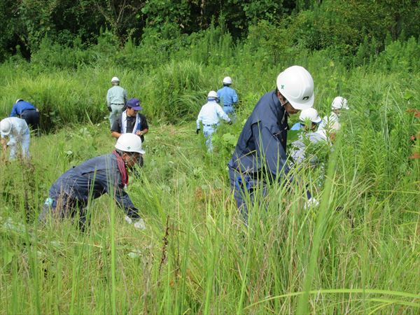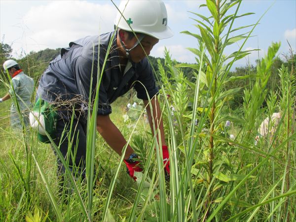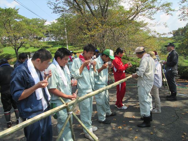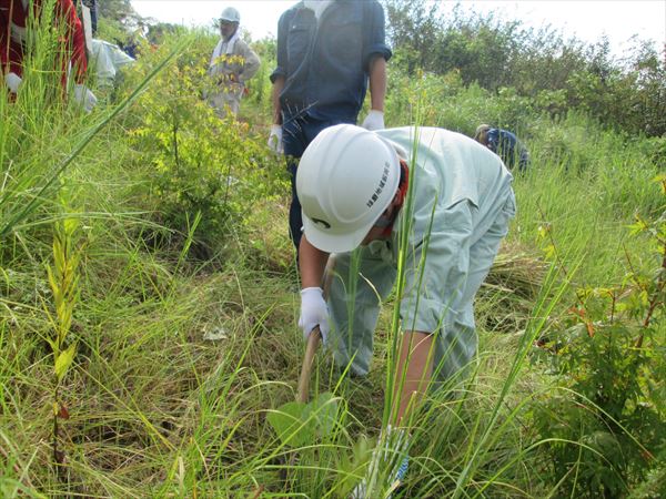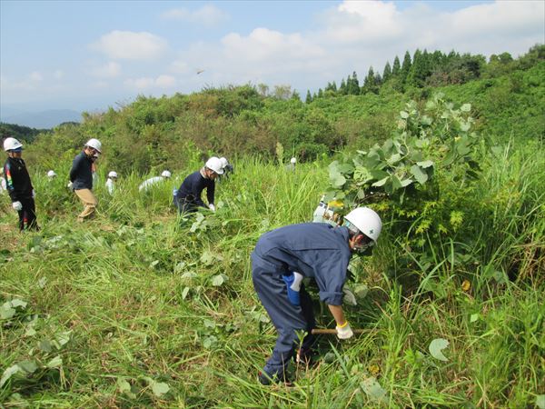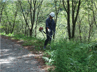 実技では、刈払機を作業規定通りに操作し林業体験をしました。