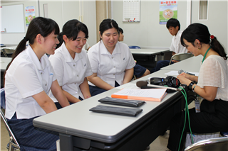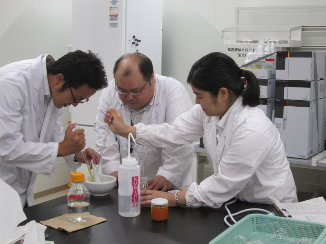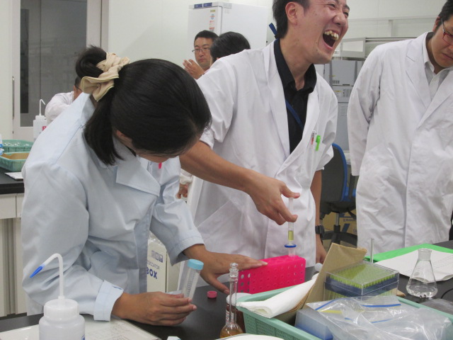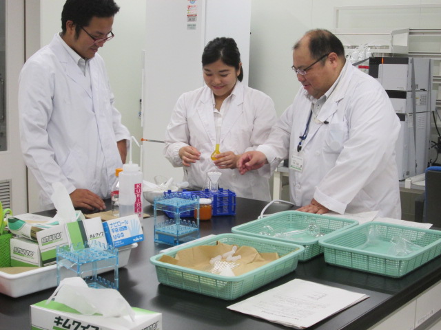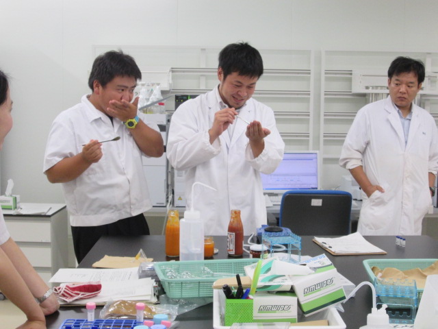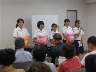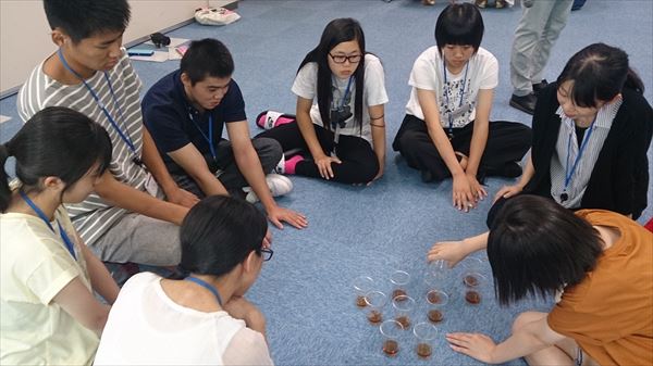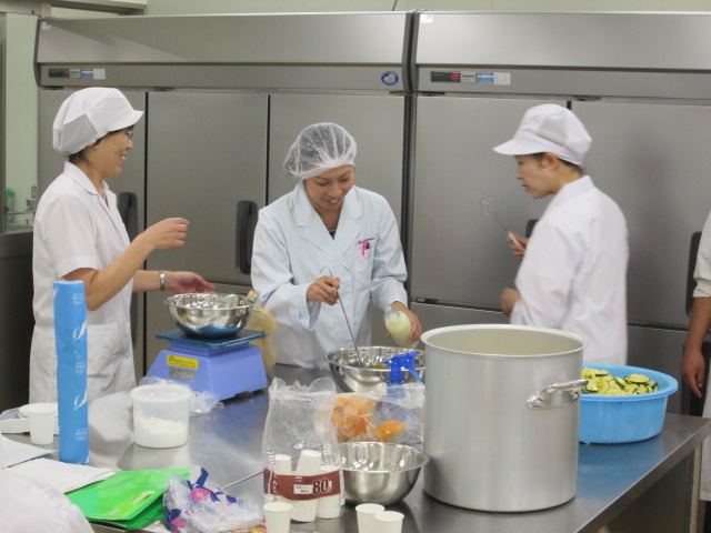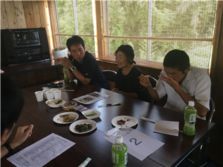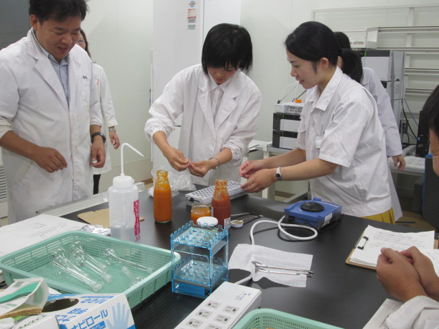 食品科学科3年の平松さん、宮原君、普通科総合コース2年の戸澤さん、森君が参加。レポートは、田中先生。