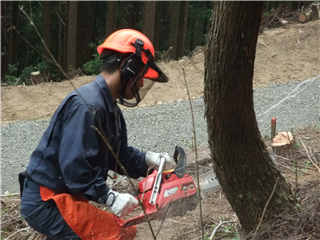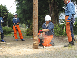 実技では、チェンソーを作業規定通りに操作し林業体験をしました。