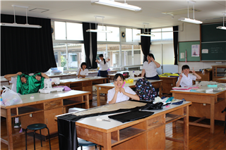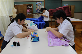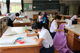 ファッションショー(文化祭)へ向けて、作品製作にも取り組んでいます。