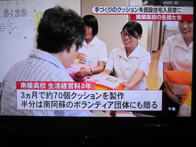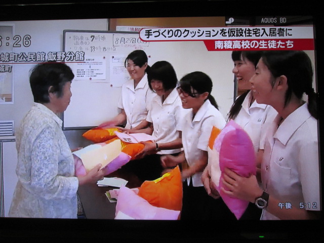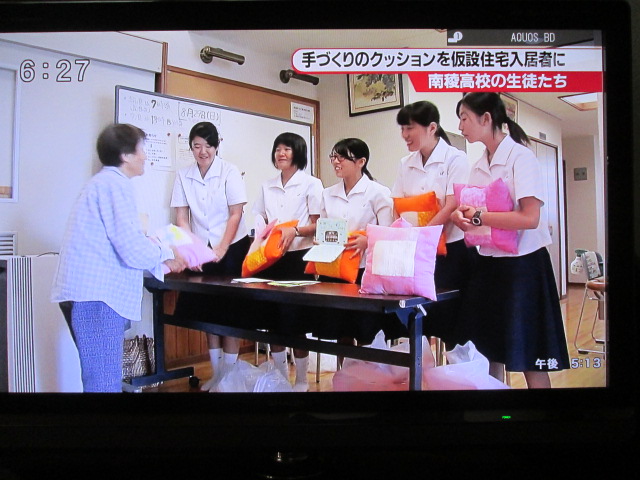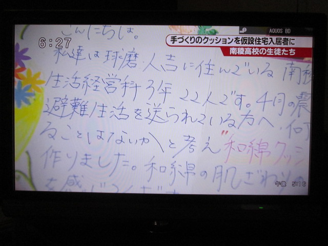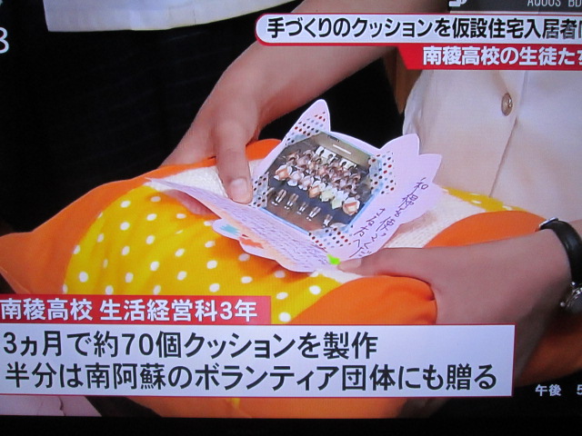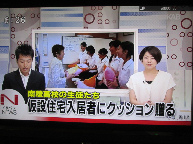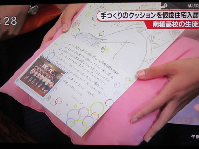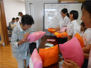 29日、仮設住宅に入居される益城町41世帯へ和綿クッションにメッセージカードを添えて寄贈しました。