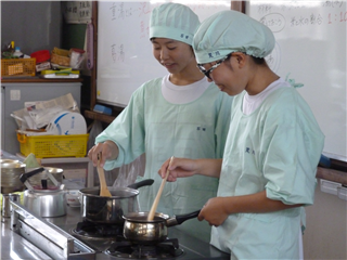 本日①限目、生活経営科3年 科目「生活と福祉」では、病人食・乳幼児食の調理実験をしました。重湯と葛湯の2つを1時間で実験・試食。