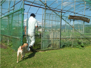 ホタルの繁殖を目指して、ゲージを作成して、ホタルを数匹入れました。