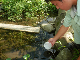 小動物にあるビオトープに、ホタルの幼虫を数匹放流しました。来年の5月に飛び回ることを期待しています。