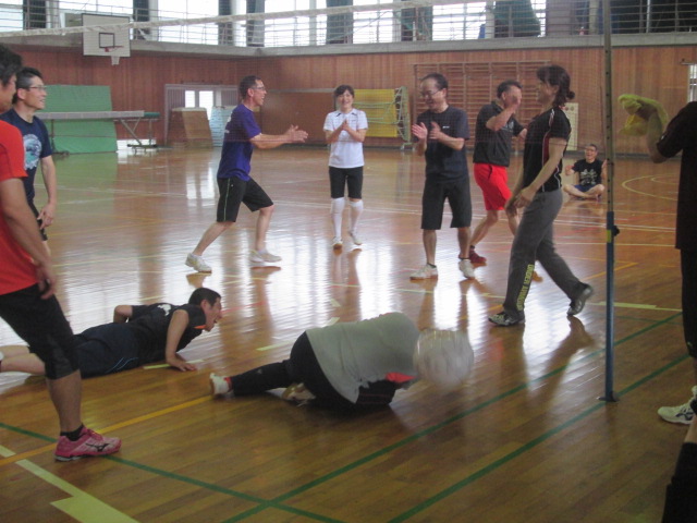 嘉村顧問、坂口会長をはじめ、4チームに分かれて試合形式で練習。