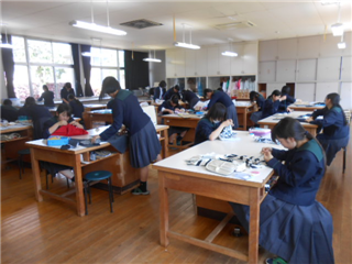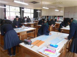 本日1限目、生活経営科1~3年がデザイン室に集まり、