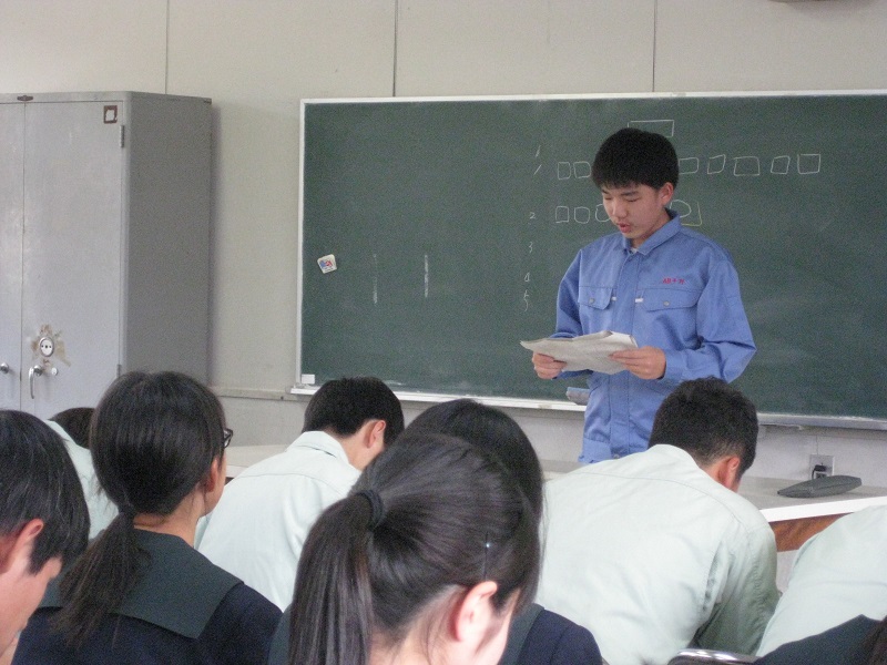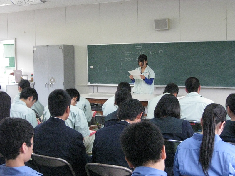 2年生、3年生からは、クラスの紹介と、学科の行事の説明を1年生に向けて行ってくれました。
