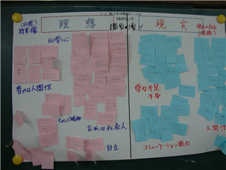 1年生活経営科による話し合いの様子です。KJ法を活用し、宣言文を検討しました。